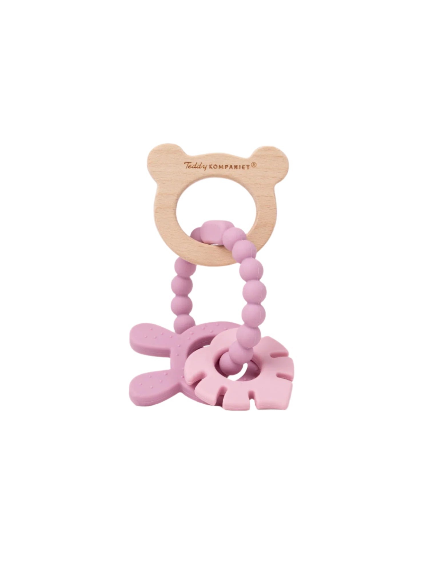 Tämä purulelu on turvallinen ja tyylikäs asuste, joka lievittää vauvan arkaa ikenistöä ja on samalla helppo tarttua pienillä käsillä. Se on valmistettu BPA-vapaasta silikonista ja kestävästä puusta, mikä tekee siitä turvallisen ja ympäristöystävällisen valinnan niin lapselle kuin vanhemmillekin. Tuotteen koko : 13×7 cm
