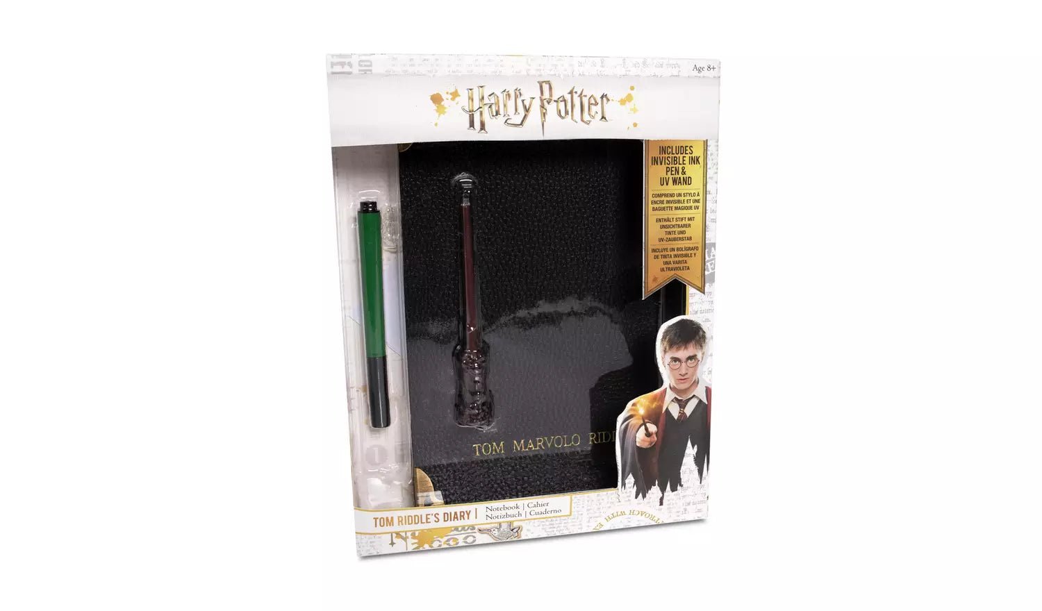 Astupa velhomaailman salaisuuksiin Tom Riddlen päiväkirjan avulla! Täytä tämä näyttävä muistikirja omilla ajatuksillasi ja muistoillasi – aivan kuten elokuvassa. Mukana tuleva erikoiskynä kirjoittaa näkymättömällä musteella, ja teksti paljastuu vain UV-valoa loistavan taikasauvan avulla. Salaisuutesi pysyvät turvassa ja ilmestyvät näkyviin kuin taikuudella! Tyylikäs nahkajäljitelmäkansi metallisilla kulmilla Näkymätön mustekynä pitää kirjoituksesi piilossa UV-taikasauva paljastaa tekstisi loistossaan Mukana paristot (3 x 1.5V LR41/AG3) Suositusikä: 8+ Pakkaus sisältää: Tom Riddlen päiväkirjan Näkymättömän musteen kynän UV-taikasauvan Täydellinen lahja Harry Potter -faneille – kirjoita, piilota ja paljasta sanasi taianomaisella tavalla!