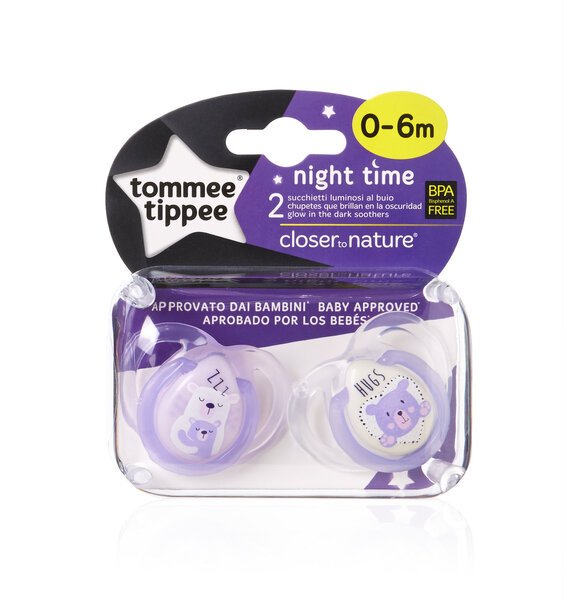 Tutti Assorted Tommee Tippee, silikoni, Night Style 0-6 m, 2 kpl