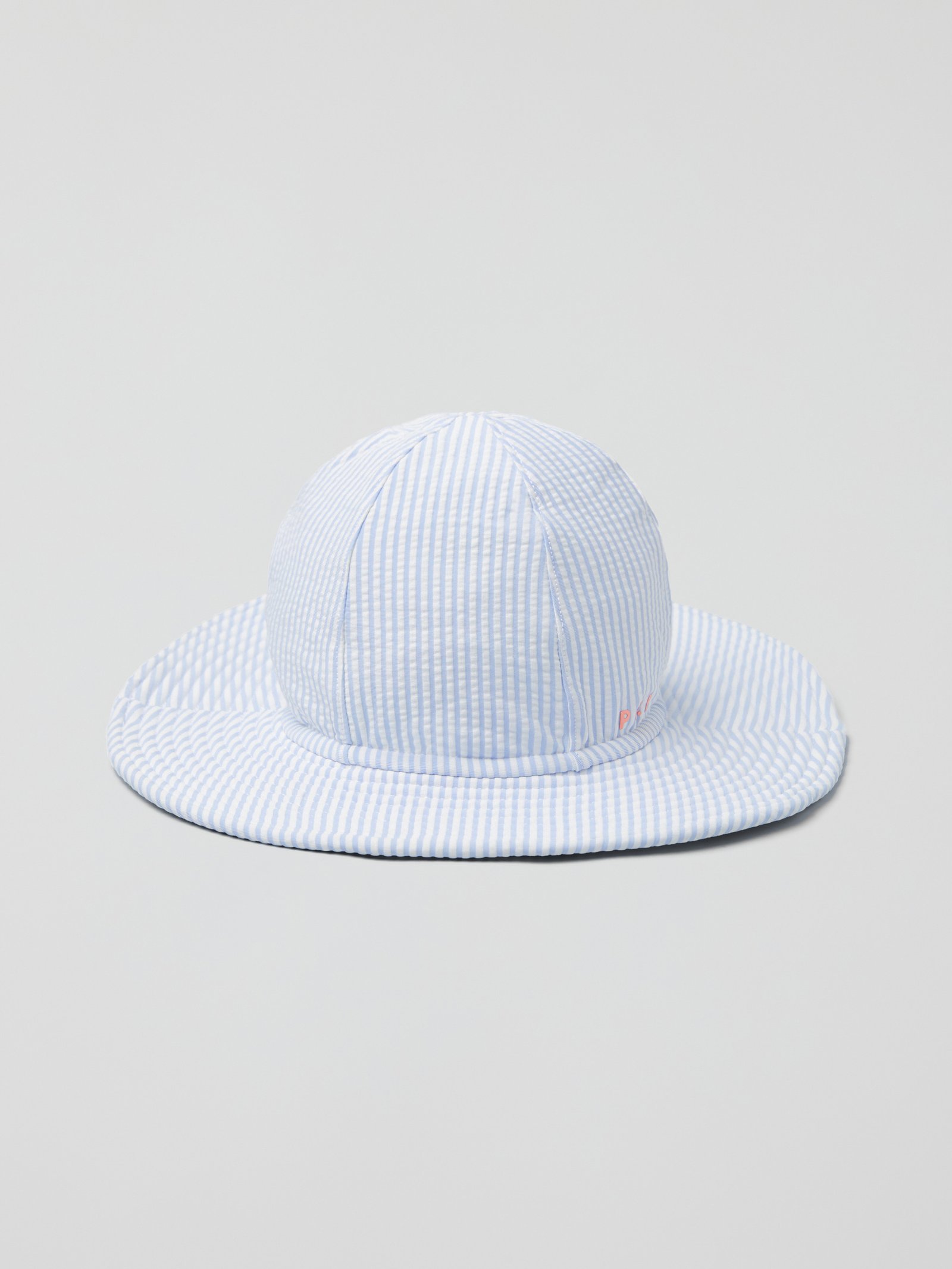 Raidallinen aurinkohattu, jonka suojakerroin on UPF 50. Pehmeää ja mukavaa kierrätettyä polyesteriä. Erittäin leveä lieri niskassa suojaa hyvin auringon voimakkailta säteiltä. Pehmeän materiaalin ansiosta se tuntuu käytössä mukavalta koko päivän.