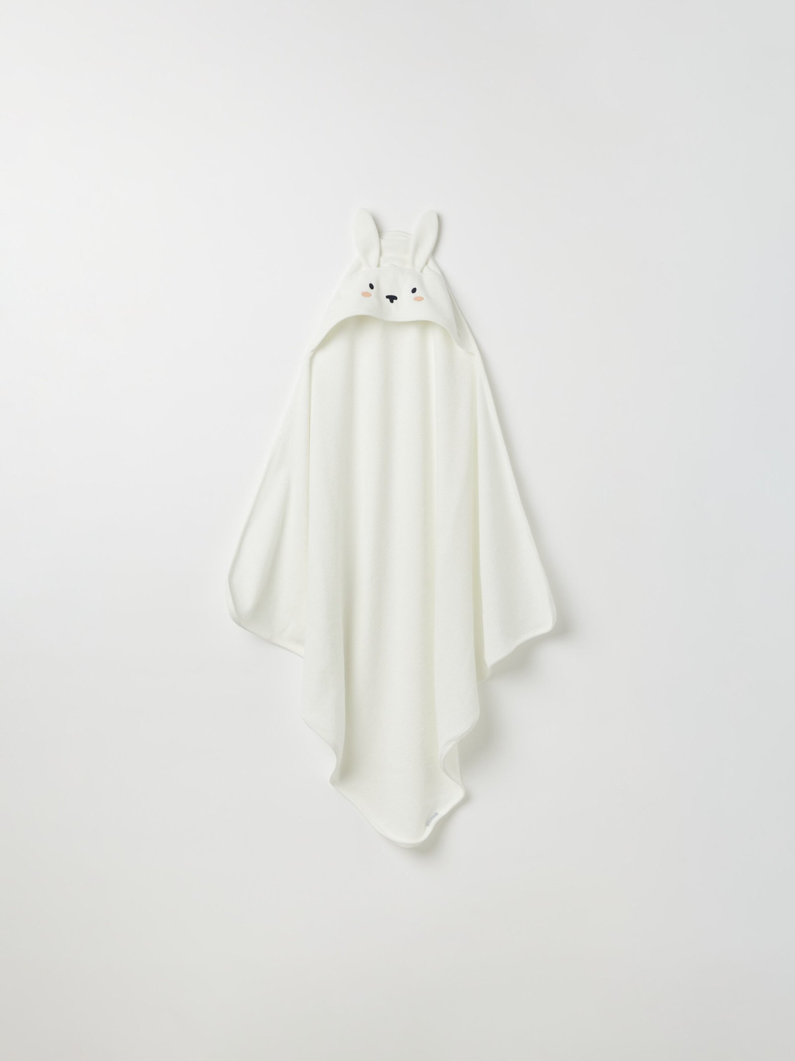 Pehmeästä puuvillafroteesta valmistetussa kylpypyyhkeessä on yhdessä kulmassa käytännöllinen pieni huppu, joka sopii pieniin päihin ja pitää kylpypyyhkeen paikallaan.