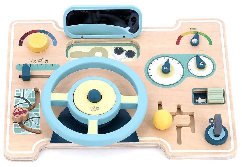 Vilacin auton rattilelu Car Busy Board on puinen aktiviteettilelu, joka tuo ajamisen riemua perheen pienimmille! Tämä värikäs ja monipuolinen lelu on suunniteltu erityisesti vauvoille ja taaperoille. Rattilelusta löytyy paljon hauskaa puuhattavaa: kääntyvä ohjauspyörä, vaihdevipu, bensamittari, GPS-näyttö, avaimet, radio ja peili – kaikki sopivan kokoisina pienille käsille. Leikkiessä lapsi pääsee ”ajamaan” kuin oikea kuski samalla kun kehittää hienomotoriikkaansa ja uteliaisuuttaan. Ikäsuositus: 18 kuukautta +Paketin mitat: 36 × 7,5 × 27,5 cm