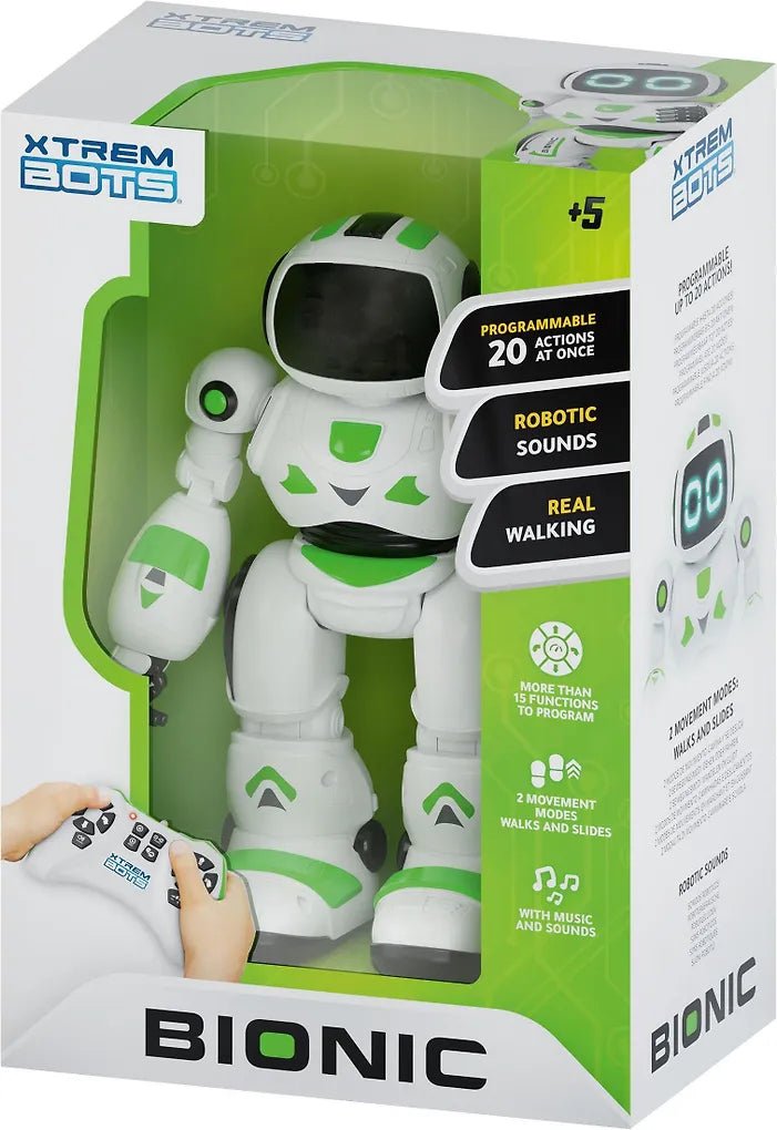 Tutustu uuteen robottikaveriisi, Bioniciin! Tämä hauska robotti liikkuu sekä kävellen että liukuen, ja sen voi ohjelmoida jopa 20 eri toimintoon. Robotti reagoi LED-valoilla ja robottiäänillä, ja se on ohjattavissa mukana tulevalla kaukosäätimellä. Bionic on loistava valinta tutustumiseen robottien maailmaan ja erinomainen tapa aloittaa ohjelmoinnin opettelu. Tämä robotti tarjoaa hauskaa ja opettavaista viihdettä yli 5-vuotiaille. Ominaisuudet: Ohjelmoitava robottiystävä 20 ohjelmoitavaa toimintoa Liikkuu kävellen ja liukuen LED-valot ja robottiäänet Loistava ohjelmoinnin aloitukseen Ei sisällä paristoja (2 x AA) Ikäsuositus: yli 5-vuotiaille