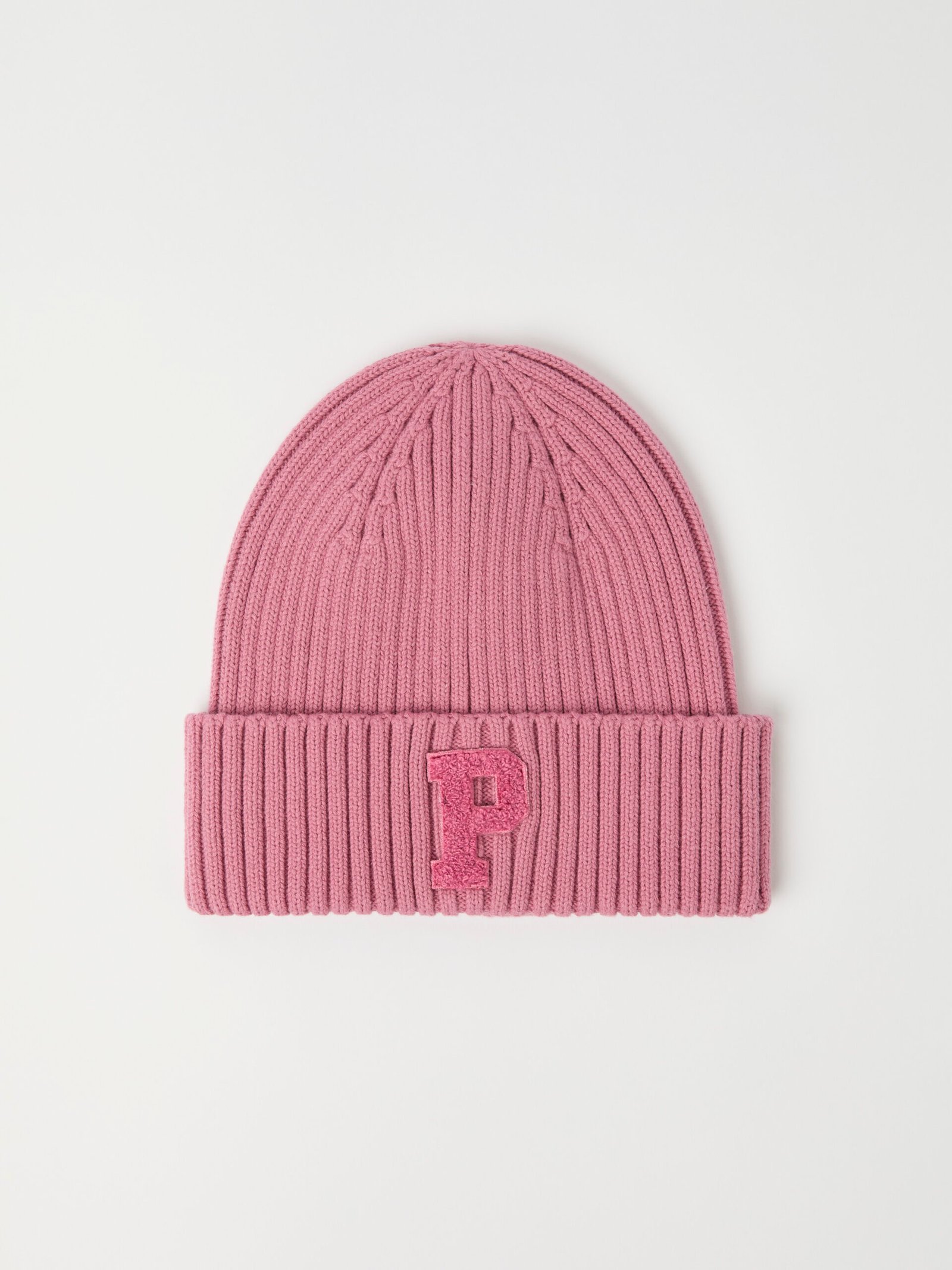 Yksivärinen ribbipipo P-applikoinnilla