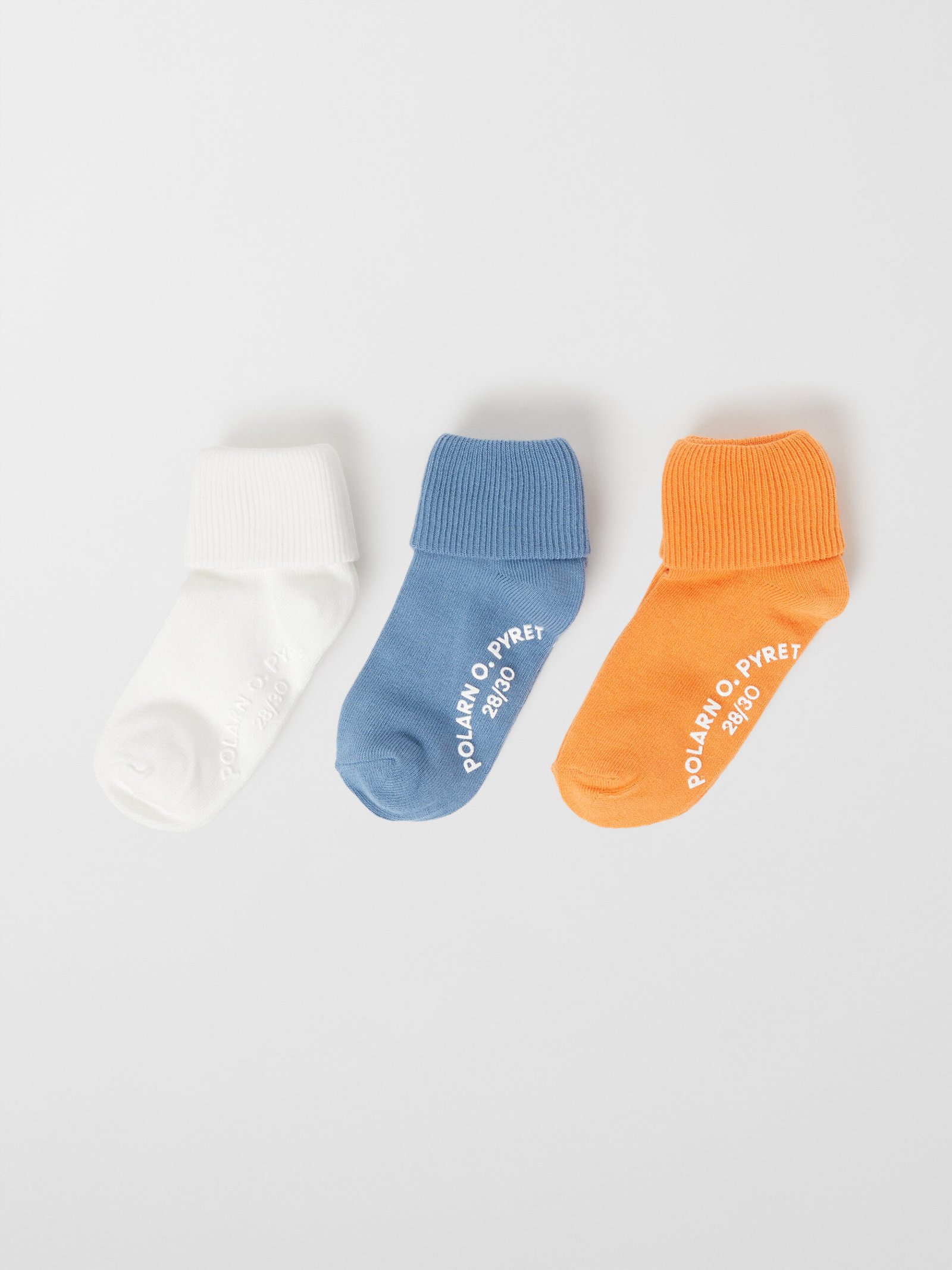 Täydennä sukkalaatikkoa kolmen parin pakkauksella yksivärisiä jarrusukkia. Sukat on valmistettu pehmeästä luomupuuvillasta. Niissä on resori, jonka voi taittaa ylös tai alas.